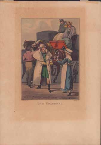 Group of two antique handcolored engravings on thick brown paper after British artist Henry Alken entitled The Coachman and Greyhounds. G. Hunt engraver. Greyhounds Dimensions: 7.50”L x 11.50”H. Coachman Dimensions: 7”L x 10”H.
