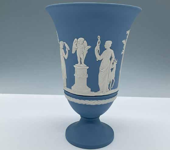 Lighter green to beige coloration with frieze of cherubs on circumference of the piece. 573.