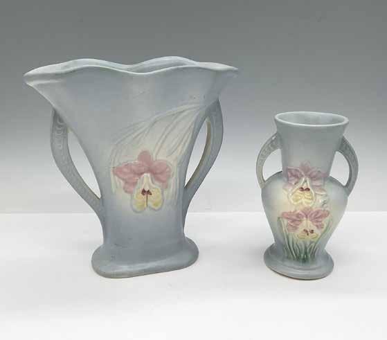 2PC VAN BRIGGLE POTTERY TULIP CONSOLE BOWL AND FLOWER FROG