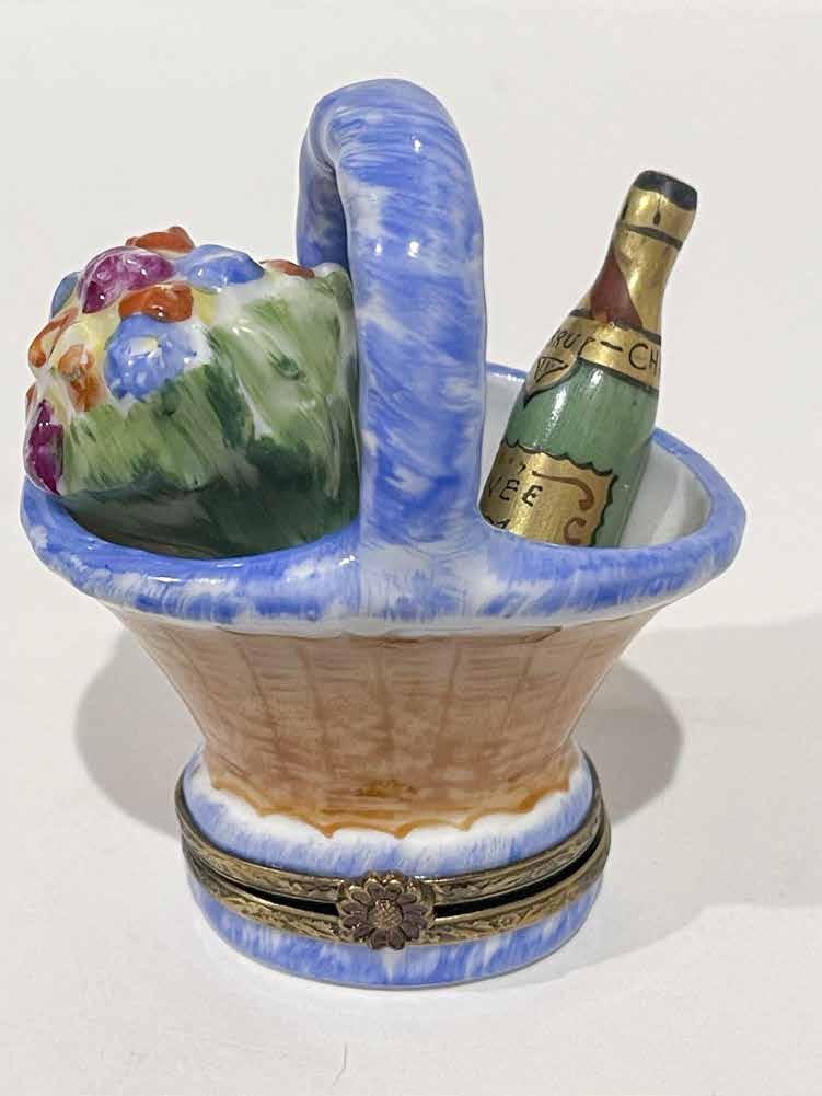LIMITED LIMOGES KEEPSAKE, PICNIC BASKET CHAMPAGNE NUMBERED