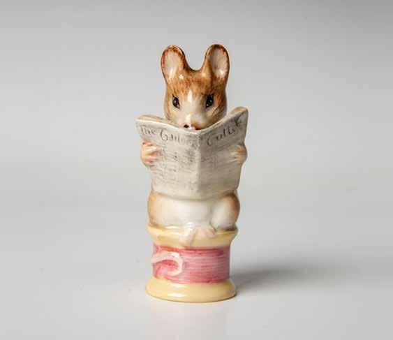 Glossy porcelain figure of a mouse fashioned in Rococo attire. Beswick Beatrix Potter backstamp.