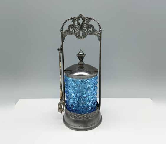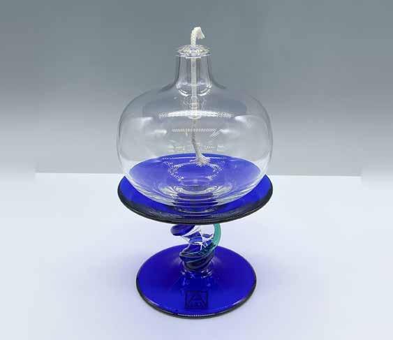 Features a cobalt blue and clear glass oil lamp with a blue green spiral detail. Art Czech Republic sticker.