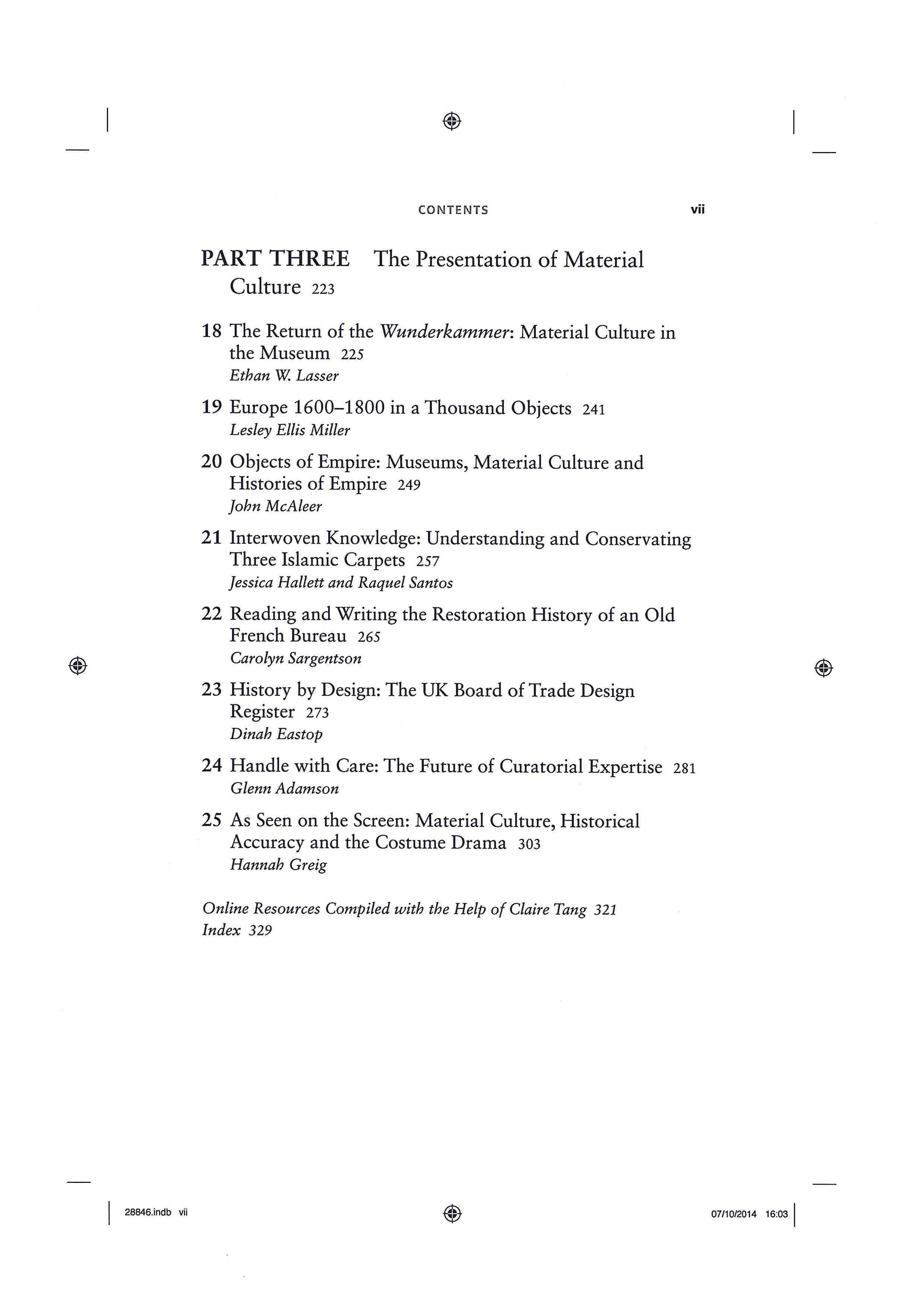 Writing Material Culture History (Gerritsen and Riello, 2014)