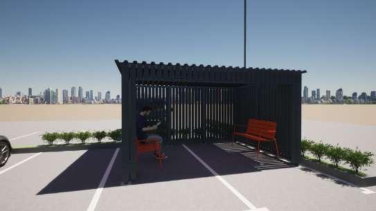 5 Timber beams roof structure Skylight I-Beam Lintels Public resting space timber roof support structure Private resting space Public interior Public exterior (threshold) Private Exterior Semi-private interior Private interior (WC) EX 02 CLIMATE SHELTER - CONCEPT DRAWINGS NOA CASTRO L ONEL MOSS KATE HALLE Site Model 1:100