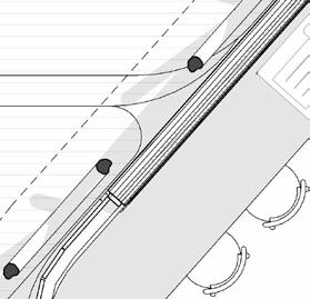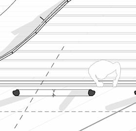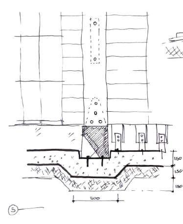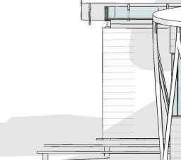 8 DETAILS SECTIONAL DEVELOPMENT 0.2 04 Lintel +3000 05 Upper Roof +3600 4 3 m² MAIN ENTRANCE Timber decking Mullion fixed to aluminium flashing shaped according to architect's specification 25mm UV treated glazed panel 150 EXT INT Reynaers_CW-50 Mullion-Transom Vertical 104.5mm fixed to aluminium plate according to architect's specifications Reynaers_CW-50 Mullion-Transom Horizontal 104.5mm Reynaers_CW-50 Structural MullionTransom Vertical 104.5mm to support roof joists & structure. Self-adhere membrane, flashing prestrip Aluminium plate shaped according to architect's specifications and fixed to timber battens with nails 8° 400 400 320 10mm Marine ply ceiling board fixed to joist from below with nails @ 900mm t 04 Lintel +3000 6 175x75mm dimensioned lumber beam fixed to 10mm M/S plates on either side with M12 bolts Custom made M/S bracket fixed to M/S pivot arm with a M12 bolt to engineers specifications Custom M/S base plate fixed to timber beam with M12 bolts 400 400 118X38mm Timber battens fixed to rafter below with nails @ 400mm c.c. 115x38mm Timber rafter fixed to M/S bracket below @ 900mm centres Organic, slanted SA Pine columns as per SANS 1783-2/1460/10149 fixed at the base and top with 10mm M/S plate bolted with M12 bolts 105 235 10mm Marine ply ceiling board fixed to joist from below with nails @ 900mm 350 20 118 138 Curved Wall 20mm Roof covering fixed to timber joist below @ 400mm c.c -01 Middle Lower Step -30.0 4 170 Foundations according to SANS 2001-CM2, according to engineer specifications. As well as in accordance with SANS 10400-H for foundations. 250 micron damp proof membrane [DPM] under all surface beds. 140Ø M/S Base plate With J-Hook concrete anchors M12 Bolts 130Ø Timber Post cut to length and fixed at top and bottom to M/S base plates 170x110x10mm M/S upper base plate that connects post to structural beam M12 Bolts @ 70mm centres 235x150mm Flitch Beam 12 mm M/S plate bolted to 2 x 67x235mm G20 Dimensioned Lumber with M12 bolts 3 m² MAIN ENTRANCE Timber decking Rebar according to engineers specifications VAR Measurement to be determined on site according to topography NGL Joist hangers according to engineers specifications 150 22 110 110x22mm Timber decking Nailed to joists below @ 150mm c.c as per SANS 10163 -130 1:10 Sectional Model Lower roof Detail 1 SCALE: 1:10 Upper roof Detail 2 SCALE: 1:10 Foundation Detail 3 SCALE: 1:10