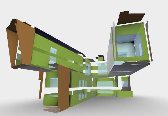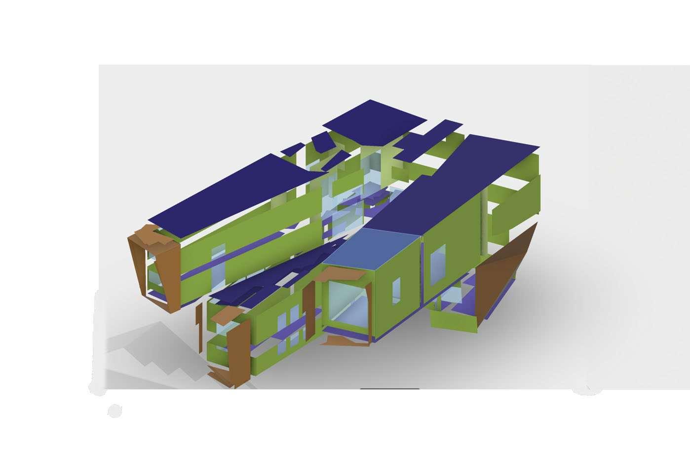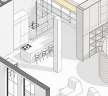 Exploded axonometric showing structure and use of spaces within the building envelope.
