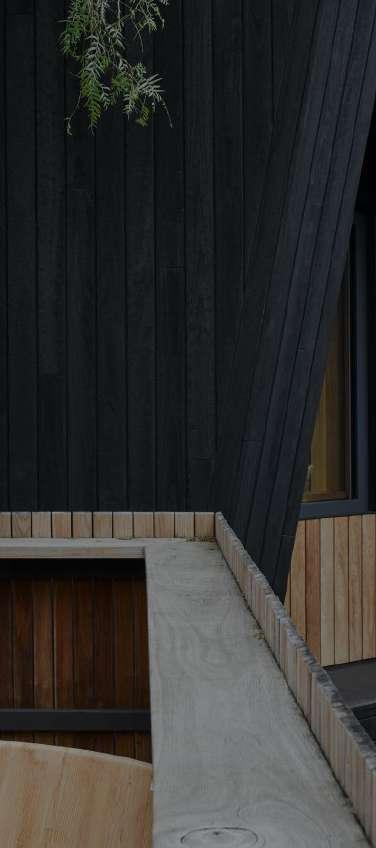 15x160mm Timber rain screen panels fixed to timber battens with 10mm reveal between panels.