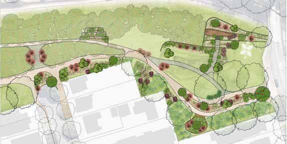 Entrance of the park open up to adjacent road junction with streets planting to create a seamless connection between residential area and parklands.