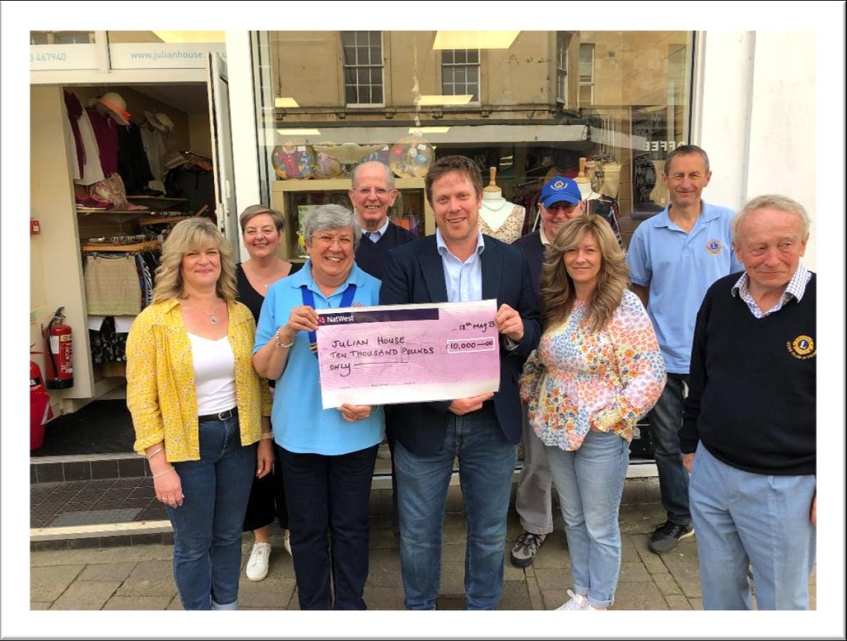 Frome Lions club recently presented the regional charity Julian House with a cheque for £10,000 which was the proceeds from its 2023 sportsman’s Dinner held at the end of March. This