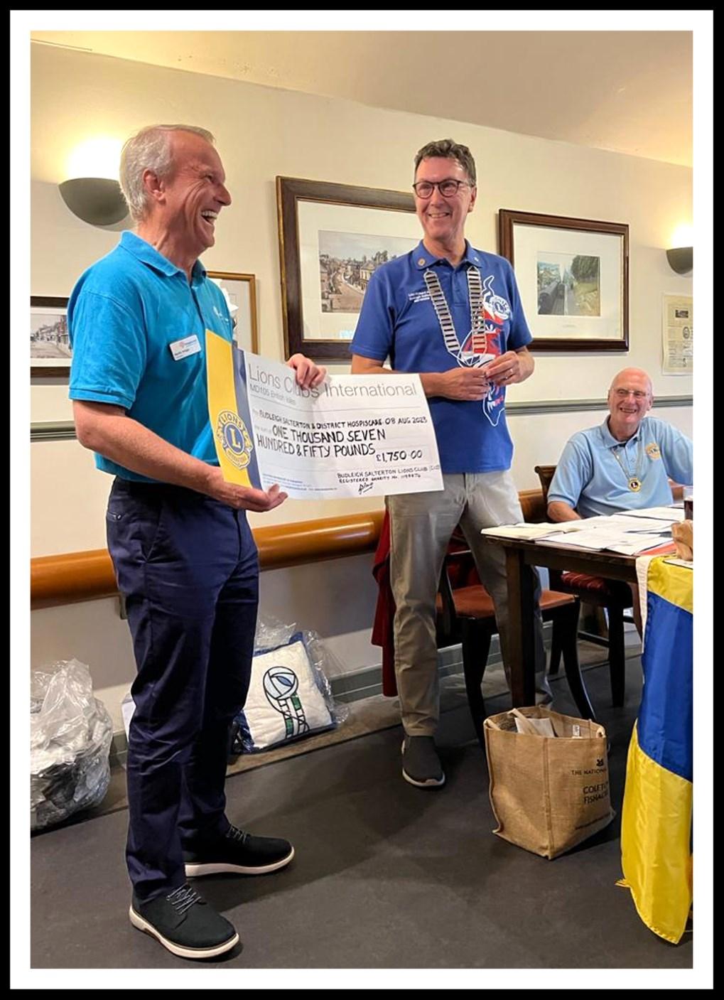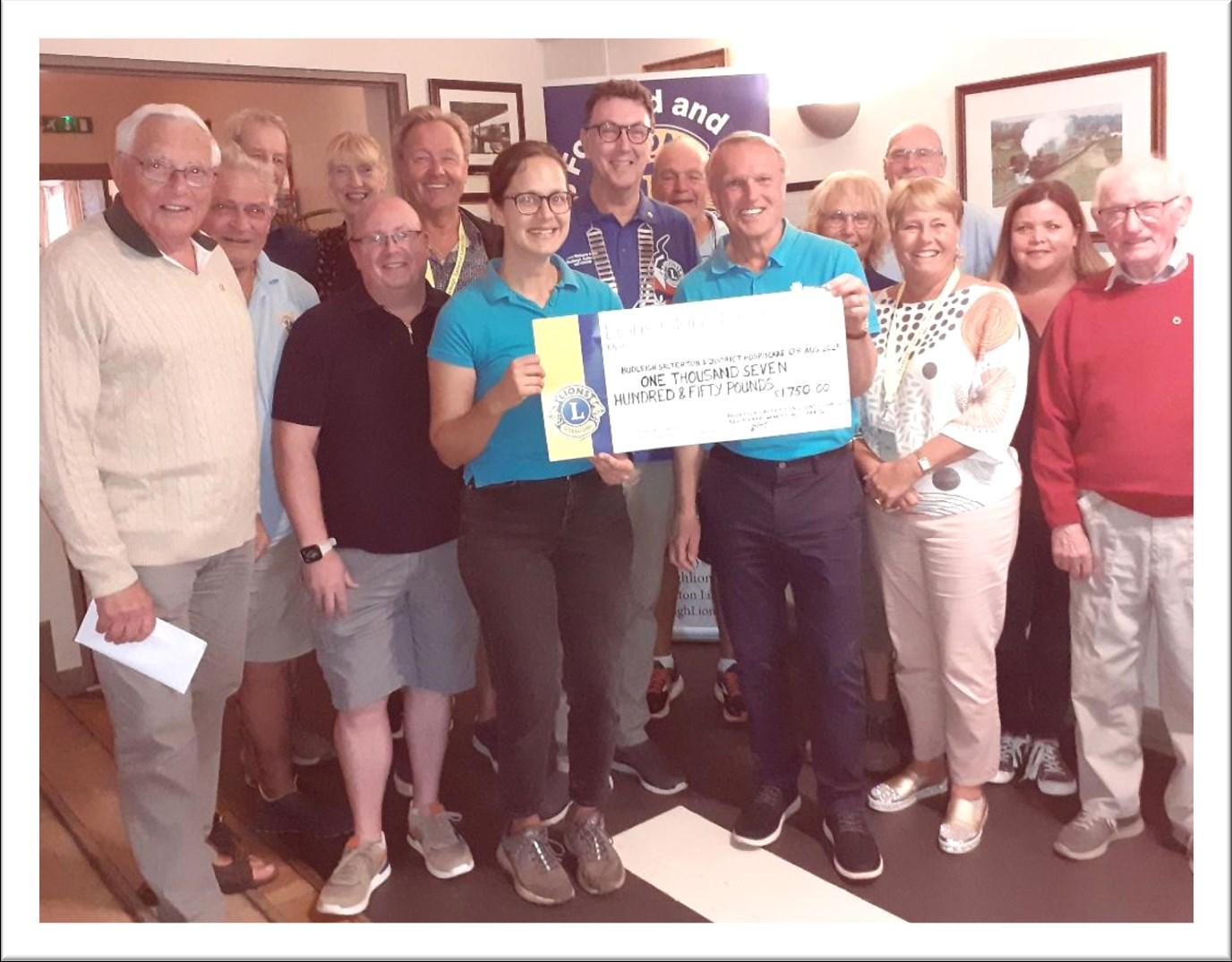 At the Lions' Business Meeting on Tuesday 8th August, Martin Briggs the Chairman of the Charity together with Claire Jones (Fundraising & Support Manager) were presented with a cheque for £1,750, the total proceeds from the Lions fundraising events mentioned above.
