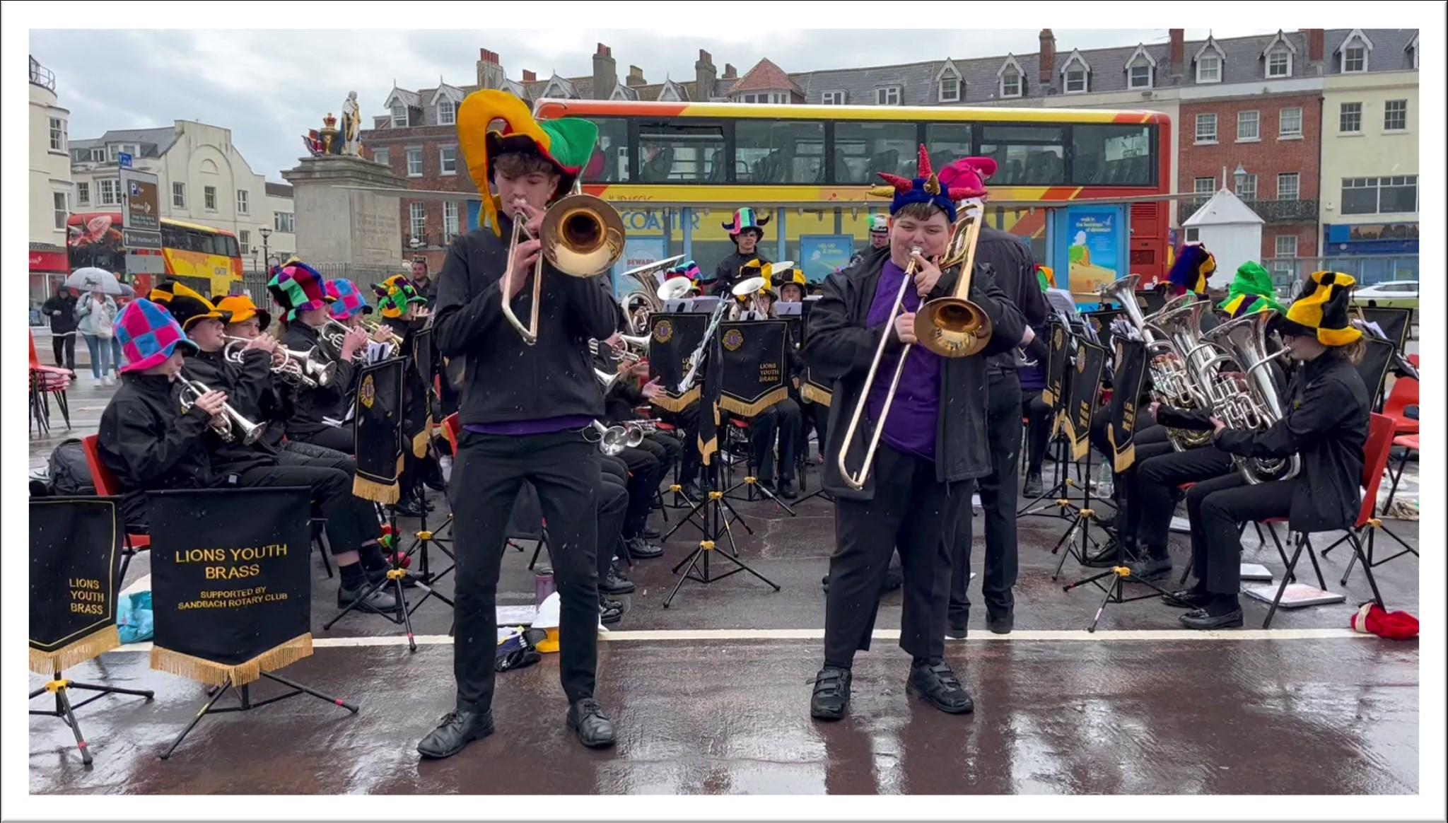 Lions Youth Brass Band goes Can Can crazy on Weymouth Esplanade