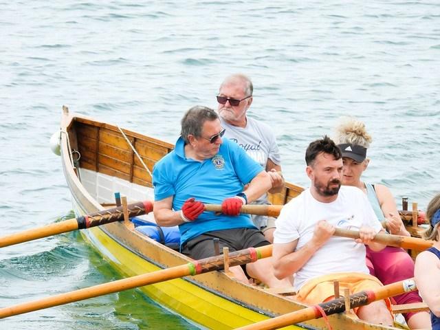 Newquay Towan Blystra Lions swapped their usual service vests for life jackets recently as they took to the water in support of Children’s Hospice South West at the annual charity pilot gig race held out of Newquay Harbour.