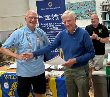 At their club meeting on the 12th June Truro Lions President Mike Kalis presented a cheque for £2,145 to