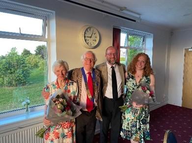 Richard Allen and Pat Vickers with President Alan Wroath, Julie Russell - Pat's sponsor and Lyn Roberts - Membership Chair
