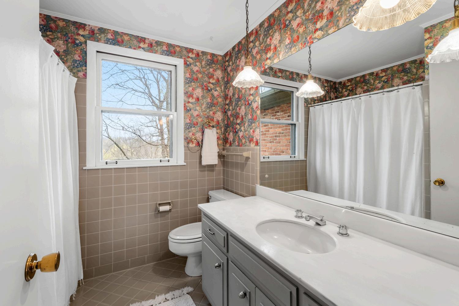Inside, the large windows flood the home with natural light and perfectly frame the picturesque landscape The spacious living areas offer endless potential, whether you choose to enhance the original character or start fresh with a custom design.