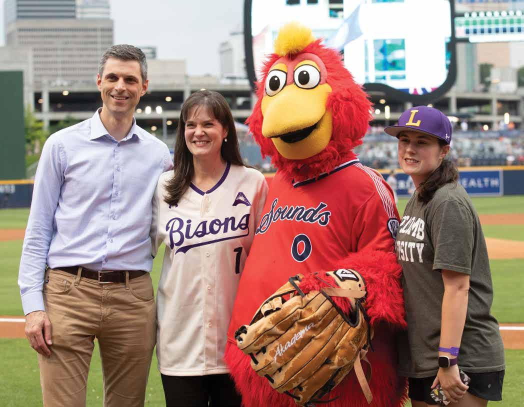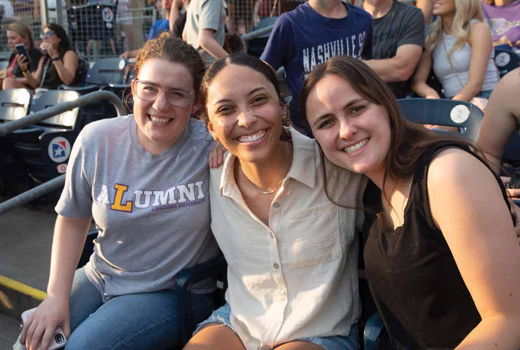 In June, the Lipscomb cheerleaders, Lou the Bison and department representatives took over the main plaza at First Horizon Park and welcomed more than 400 Lipscomb alumni for a baseball night cheering on the Nashville Sounds. The Be A Light Tour continued in Dallas and offered alumni a chance to honor the latest Shining Light recipient, Susan Hernandez (BS ’90) (see page 43).