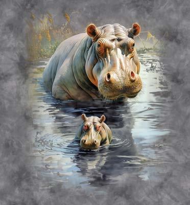 MAMA & BABY WHITE RHINO RIVER HIPPOS