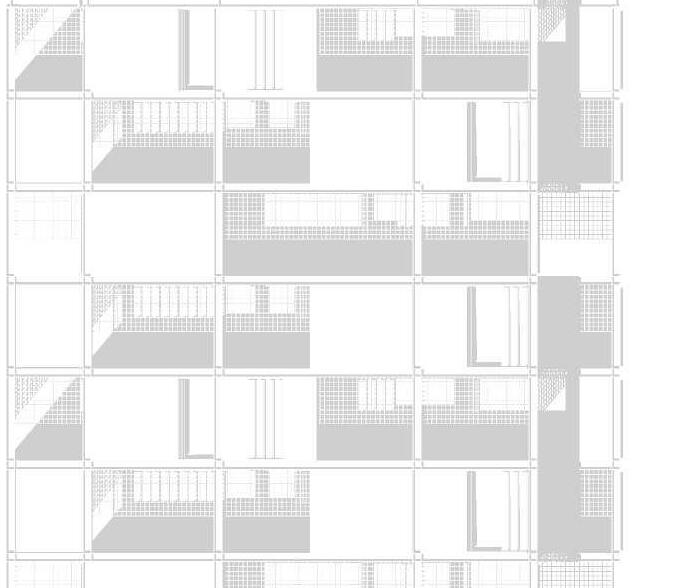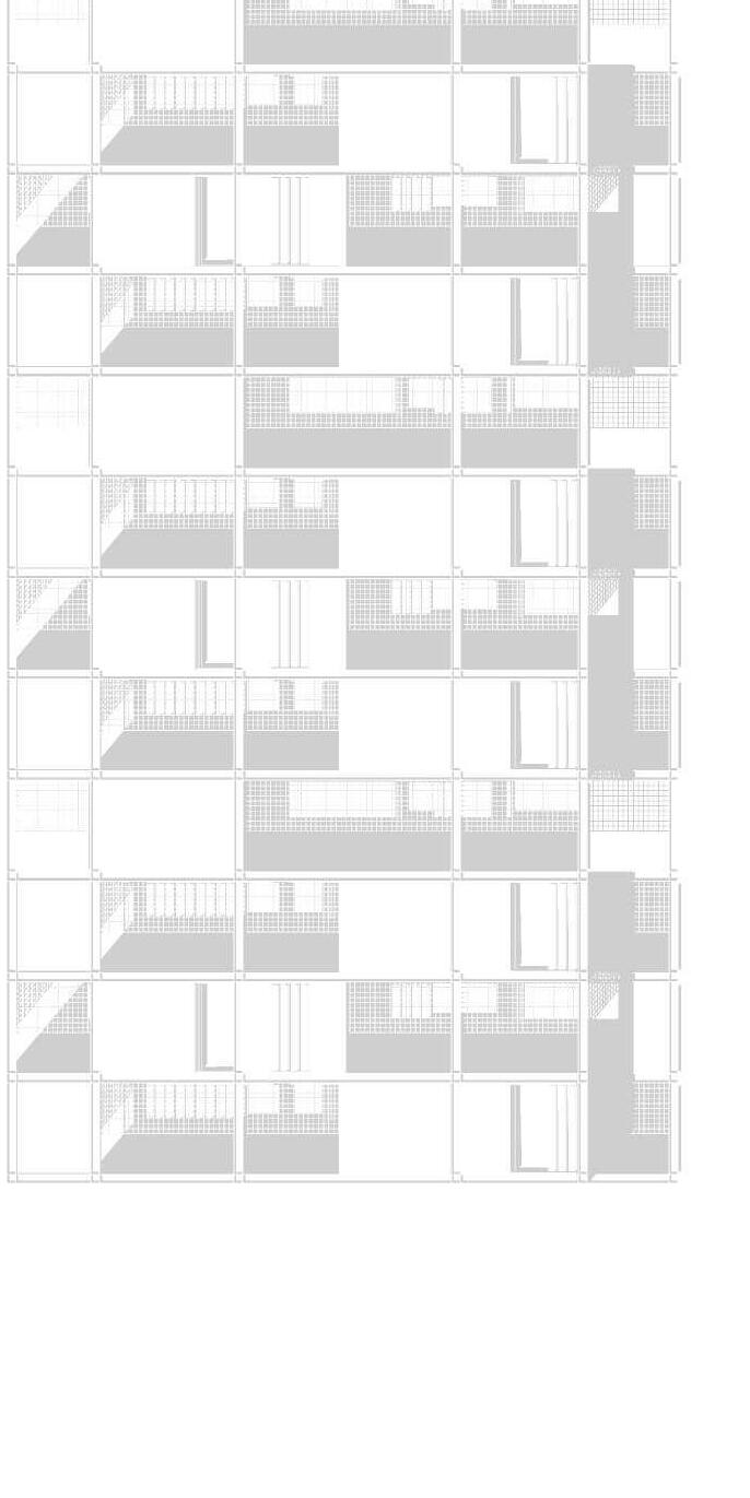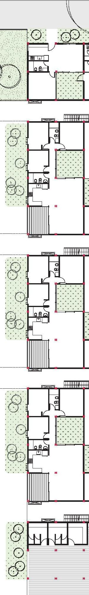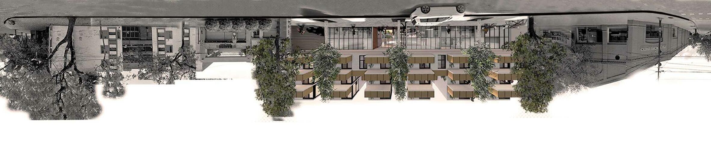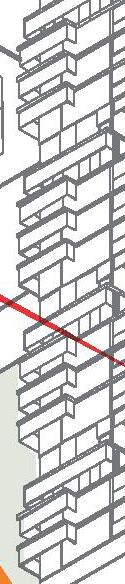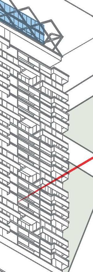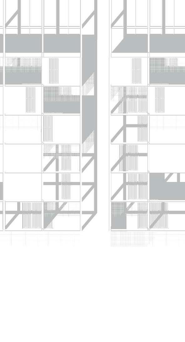 El proyecto ubicado en el area sur de Rosario Consta de 5 volúmenes, comprendidos por 3 tiras, 1 bloque en L y 1 torre con basamento,aportando 238 nuevas viviendas. La estrategia de implantación utilizada se basó en: 1_Retirar la torre de la esquina cediendo el espacio a la ciudad en un recorrido comercial, con la idea de que los parques dialoguen mejor entre sí. 2_El bloque en L y las tiras interior se posicionan en sentido este-oeste, buscando la iluminación natural de los patios compartidos y aprovechando la condición de protección natural que proveen los árboles del parque y calles aledañas, sumado a los parasoles verticales Una vez definida la implantación la idea principal del proyecto es generar patios en altura, mediante la sustracción y rotación de volúmenes, produciendo una variación morfológica, estas generan una serie de “ventanas” visuales hacia el extenso parque y los equipamientos públicos del entorno