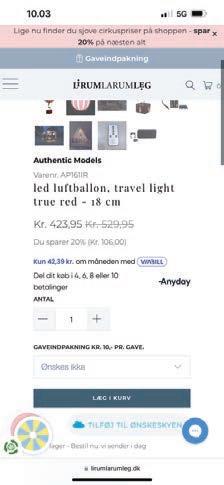 1. Luftballon, 32 cm fra Authentic Models kr. 999,95 2. Gymnastikringe fra Lilllagunga kr. 1.199,95 3. Den fantastiske bog om hajer fra Carlsen forlag kr. 229,95 4. Bil, Porsche 911 fra Baghera kr. 449,95 5. The Shorty skab i metal fra Mustard Made kr. 1.199,95 6. Plakat fra Nepthys Illustrated kr. 249,95 7. Løbehjul Sprite Blue fra Micro kr. 799,95 8. Plakat flere størrelser fra Babar kr. 299,95- 699,95 9. Gulvtæppe fra Ferm living kr. 999,95 10. Drikkedunk fra Dopper kr. 109,95 11. Fodbold bamse fra Jellycat kr. 469,95 12. Svampelampe, fra Heico kr. 679,95 13. Walkie Talkie sæt fra Kidywolf kr. 499,95 14. Postkasse fra Bruka Design kr. 199,95 15. Astrup stigereol med skrivebord fra By Aulum kr. 4.299,95 16. Armbåndsur fra Djeco kr. 289,95 17. Plakat fra Studio Loco kr. 249,95 18. Gigabombespil fra Moulin Roty kr. 259,95 19. Animalium fra Forlaget Mammut kr. 299,95 20. Børnekamera, flere farver fra Kidywolf kr. 599,95 21. Voksen Sengetøj fra Snurk kr. 649,95 22. Sækkestol fra Nobodinoz kr. 1.129,95
