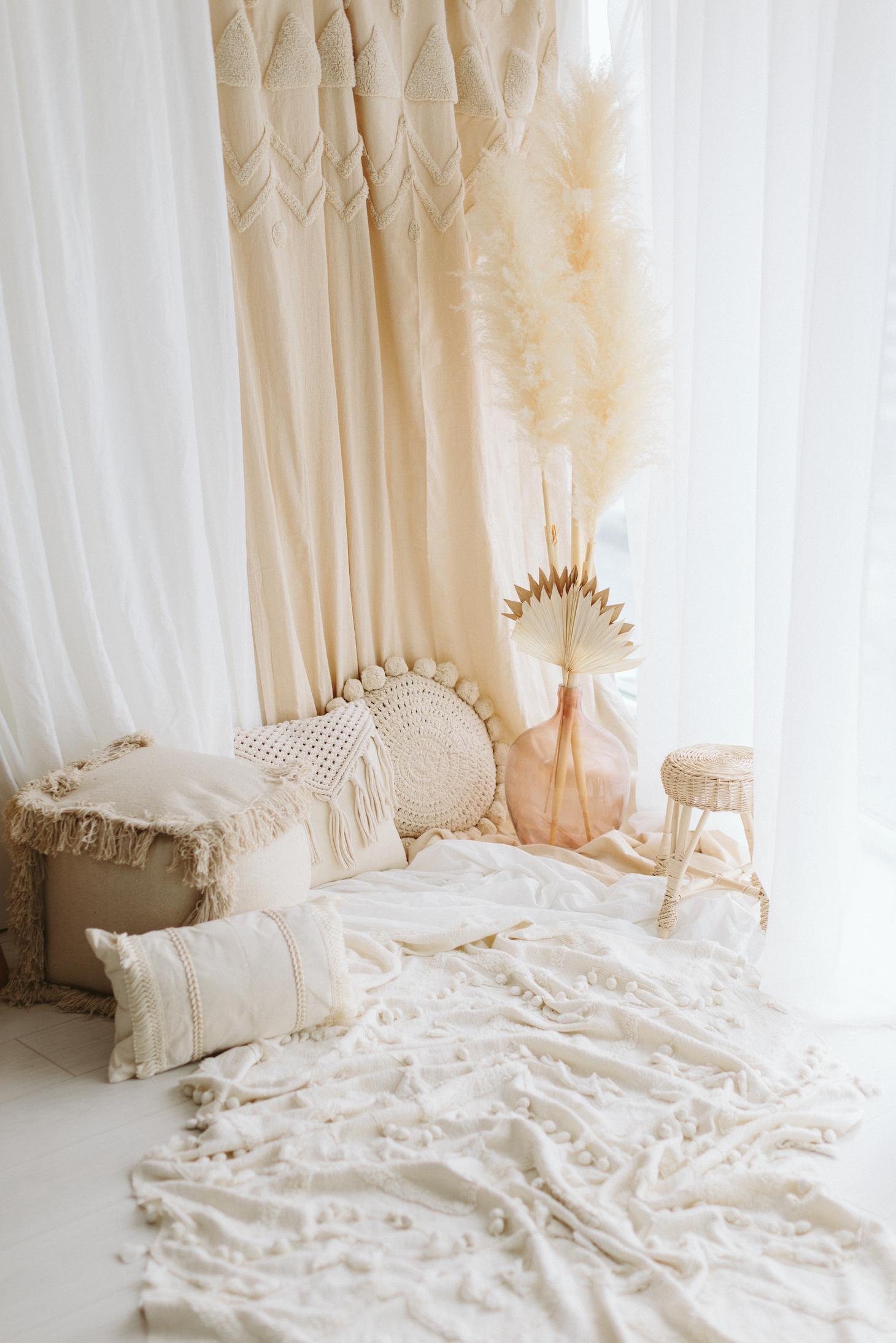 Do dyspozycji w cenie wynajmu wszystko, czego możesz użyć do stworzenia własnych aranżacji pod sesje zdjęciowe: huśtawki, koce, ozdobne poduszki, sztuczne kwiaty, suszone trawy, zabawki, makramy i wiele innych.
