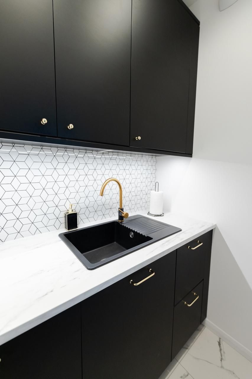 Studio wyposażone jest w sprzęt sprzątający: odkurzacz, mopy, zmiotka i szufelka, ścierki, rolka do sierści, płyny do sprzątania itp., który znajduje się w aneksie kuchennym.
