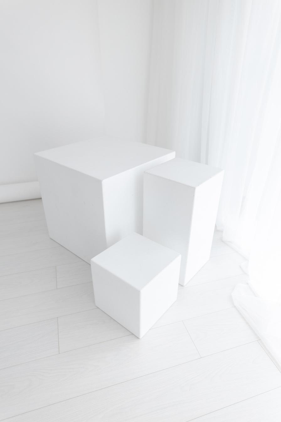 3 x białe kostki 60 x 30 cm, 30 x 30 cm, 60 x 60 cm / Taboret funkcyjny do wykonywania ujęć z góry, zawieszania dekoracji, itp.