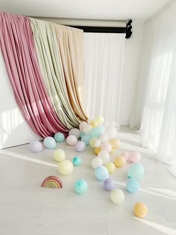 Pasy szyfonu ecru, pas szyfonu brudny róż i czarny 4 x czarne bawełniane materiały, służące również do wyciemnienia studia