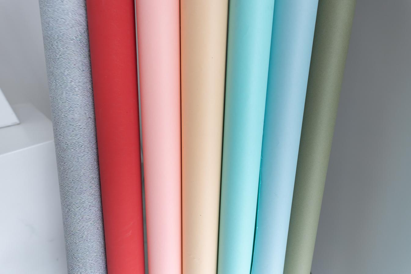 Kartonowe o szerokości 2,72 m: białe, czarne, szare, różowe, czerwone, pomarańczowe, turkusowe, niebieskie, zielone (oliwkowe)