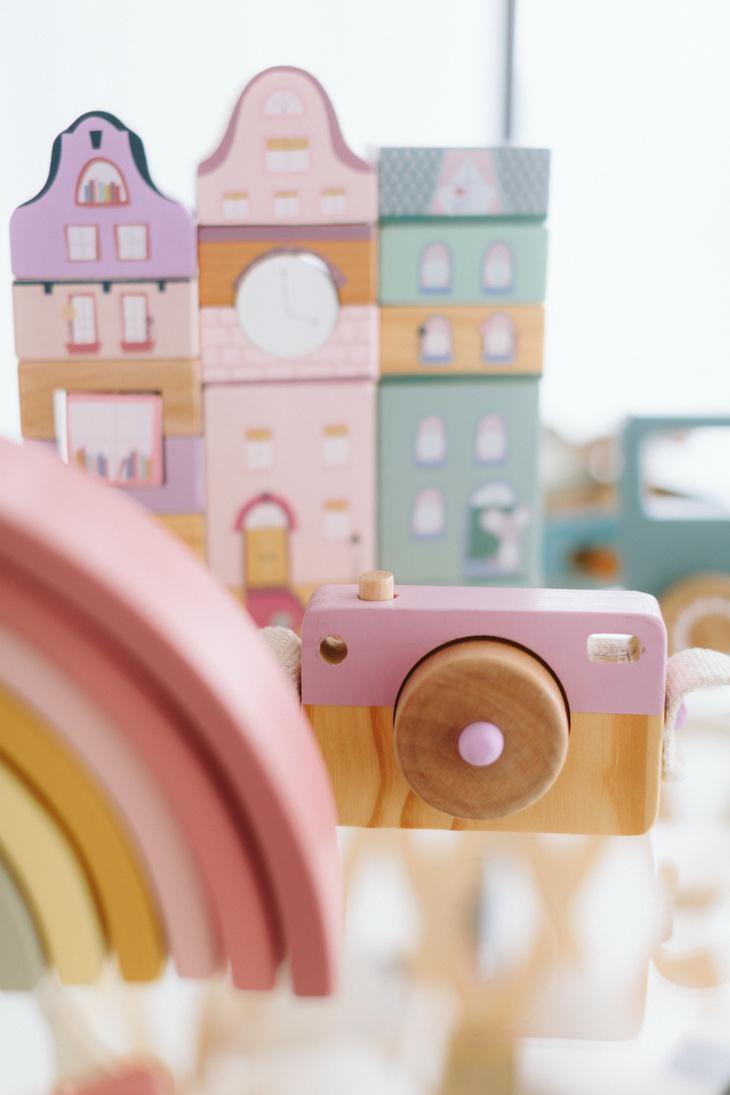 Pastelowe drewniane zabawki, klocki, ręcznie robione lale, k k h k