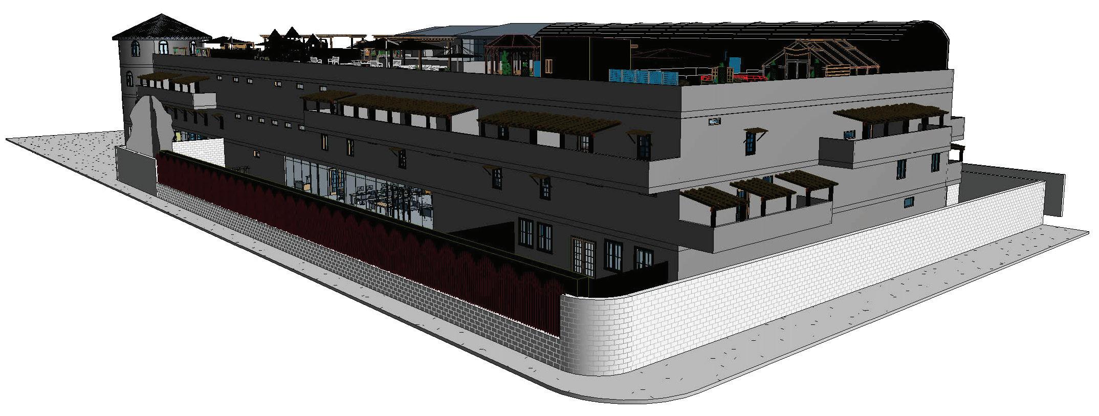 The building covers approximately 13,000 square feet over 2 stories in the 11,000 sqare foot proposed property. The first floor is the main congrational hub of the center. With the “heart of the tree” being the extra large dinning ta- ble and kitchen where patrons can sit at or cook a snack after a treatment or meeting.