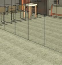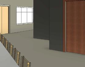 With the building being rather on the smaller side, the multiple frosted and clear curtain walls allow the natural sunlight to penetrate the builing and give it a more open feel- ing. There are multiple exterior green spaces and siting areas giving the green and sun thereapy. The multiple green/living walls as well as the color scheme is to give a “in nature” feel while still being in doors.