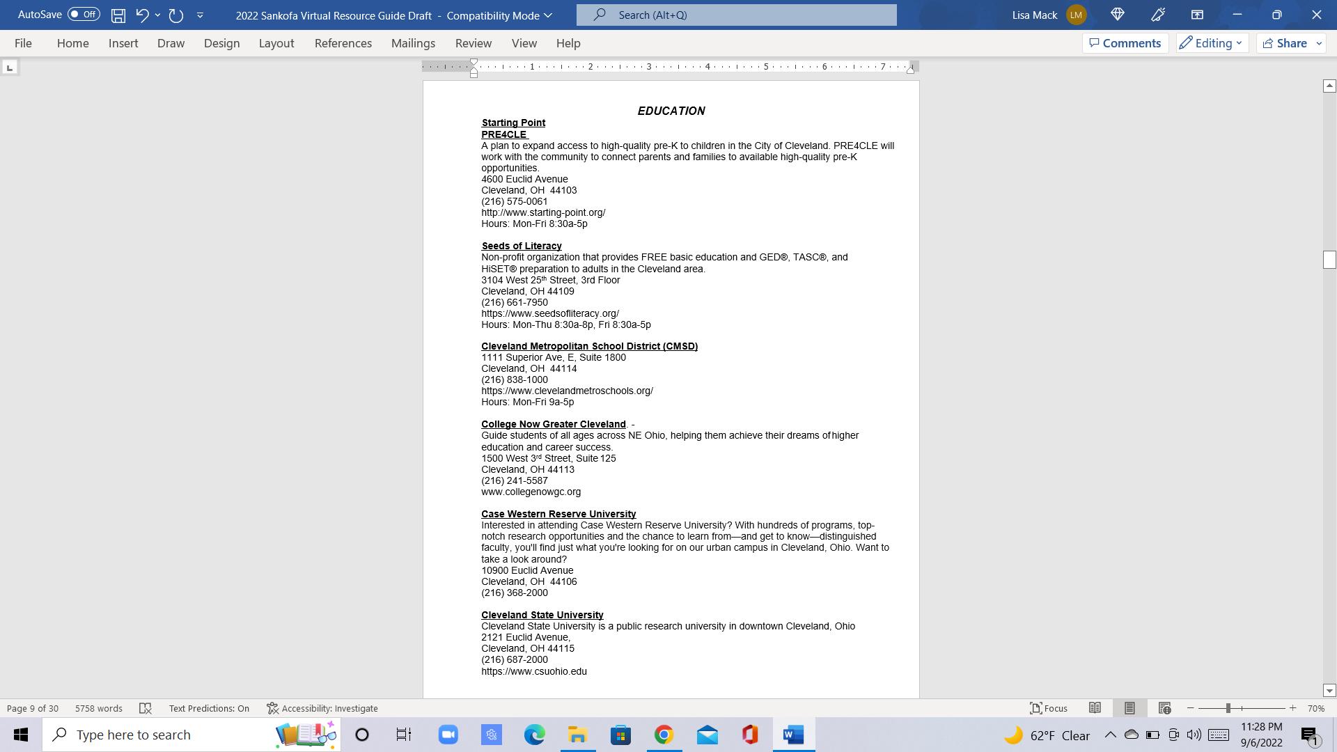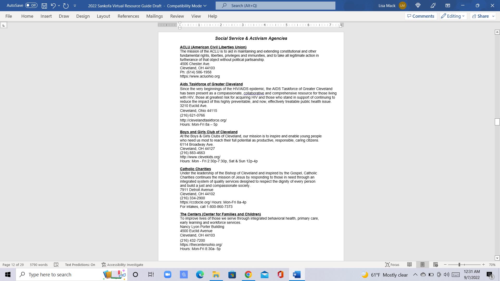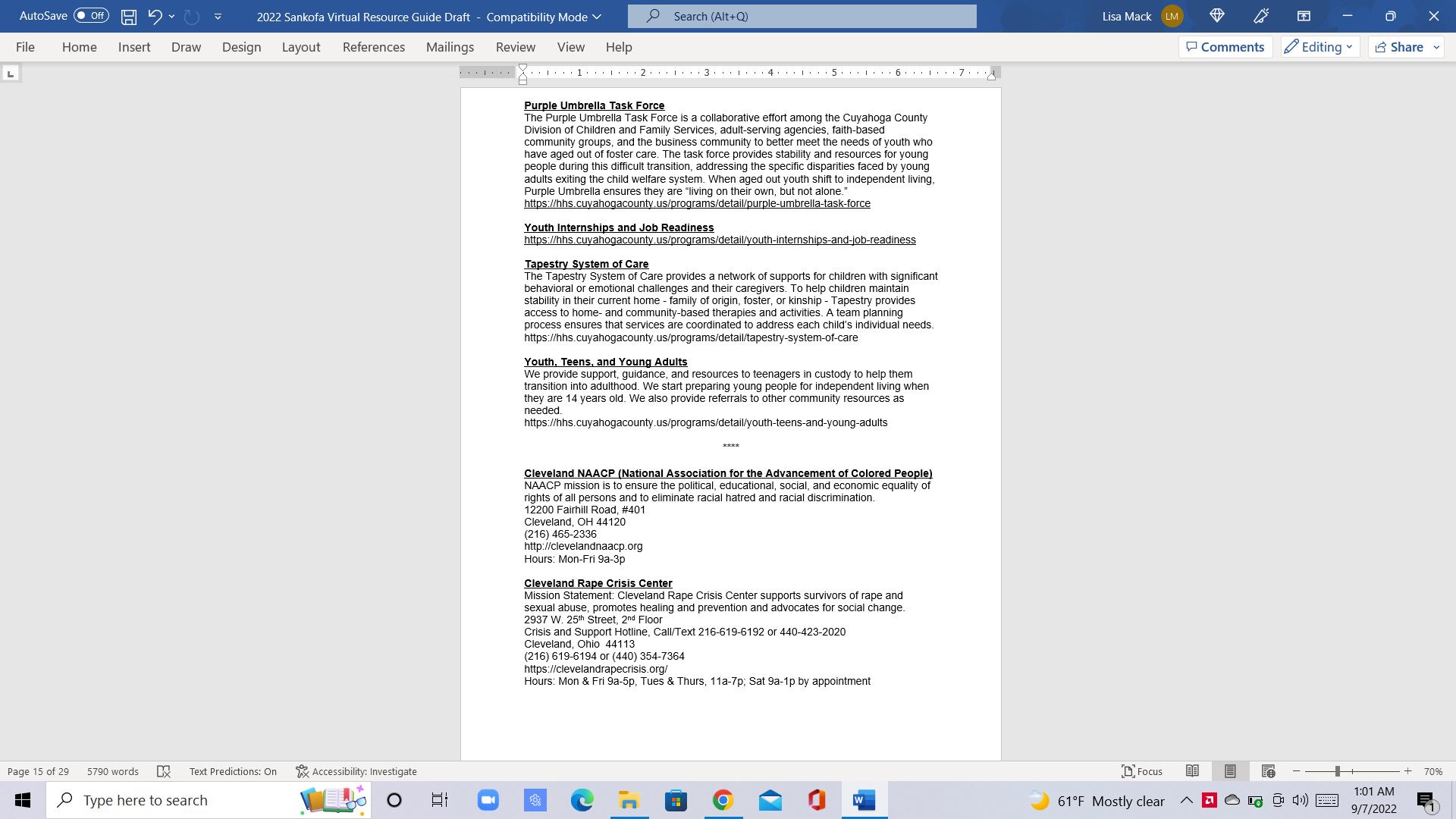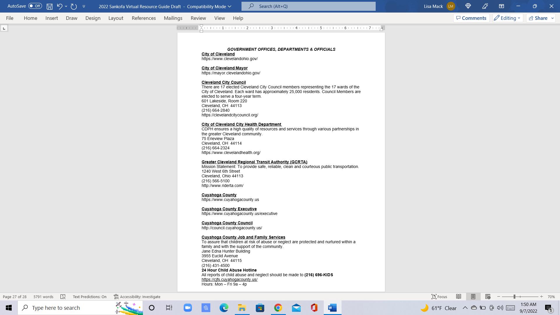 This year we also thought it would be helpful to provide resources that participants could use after the workshop. In this Guide participants will find contact information and websites for many Northeast Ohio organizations and resources. Please feel free to forward the guide to others who may find it useful.