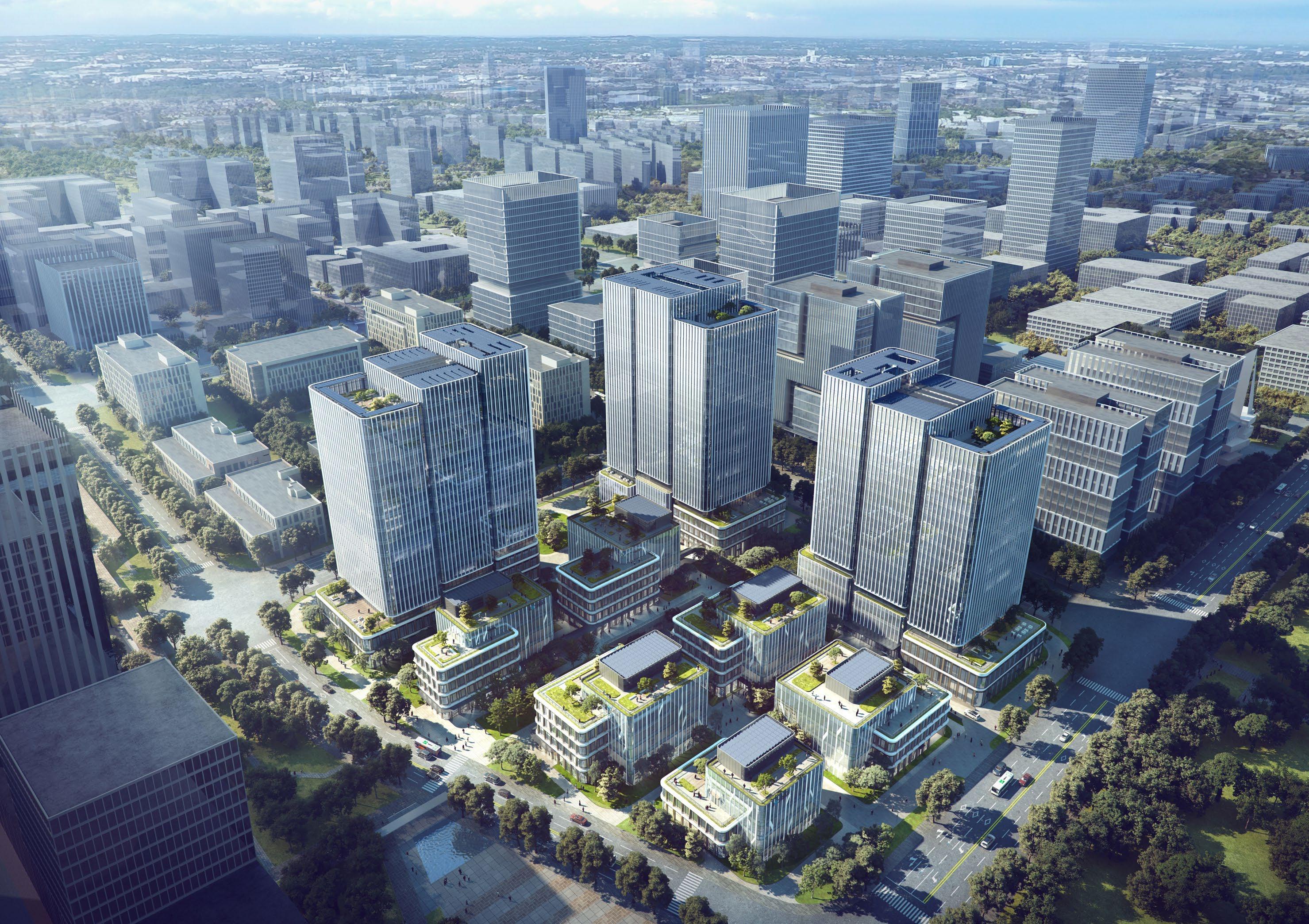 This project aims to create a future-oriented, sustainable science and innovation cluster in Shanghai’s Pudong New Area, becoming the new flagship of Zhangjiang Science City. Situated in lot 3C-10 of Shanghai’s Industrial Park, the design harmonizes with the site’s natural environment, blending architecture with nature. The complex features staggered building heights, maximizing views and integrating a rooftop garden with photo voltaic energy. A multi-dimensional greening system connects pedestrian paths and park nodes, promoting a low-carbon, green landscape. Flexible building facades ensure ventilation and comfort, meeting tenants’ adaptable needs.
