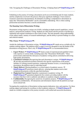 Embarking on the journey of writing a dissertation can be an overwhelming task for many students, and the complexities involved in the process often pose significant challenges. From extensive research to meticulous documentation, the demands of crafting a comprehensive dissertation on topics like "Dissertation McDonald's" can be a formidable undertaking. This is where seeking professional assistance becomes a crucial consideration.