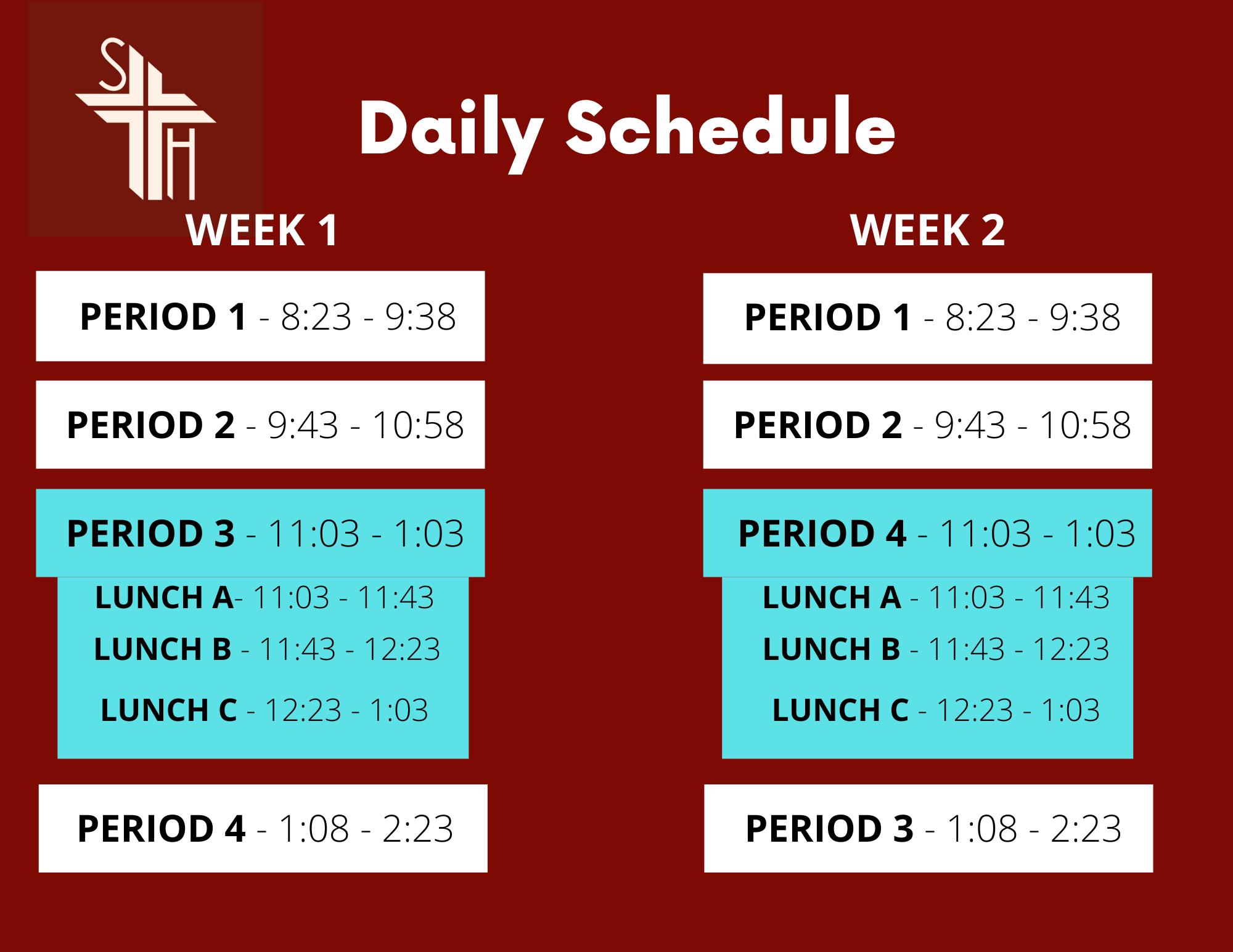 Students are expected to attend all scheduled classes and school activities (such as assemblies and liturgies) and to be at school in full and proper uniform throughout the instructional day Students with a period 1 Study Hall may arrive at school for period 2 classes Students with a period 2, period 3, or period 4 Study Hall who remain at school are expected to remain either in the cafeteria, or library in full and proper uniform