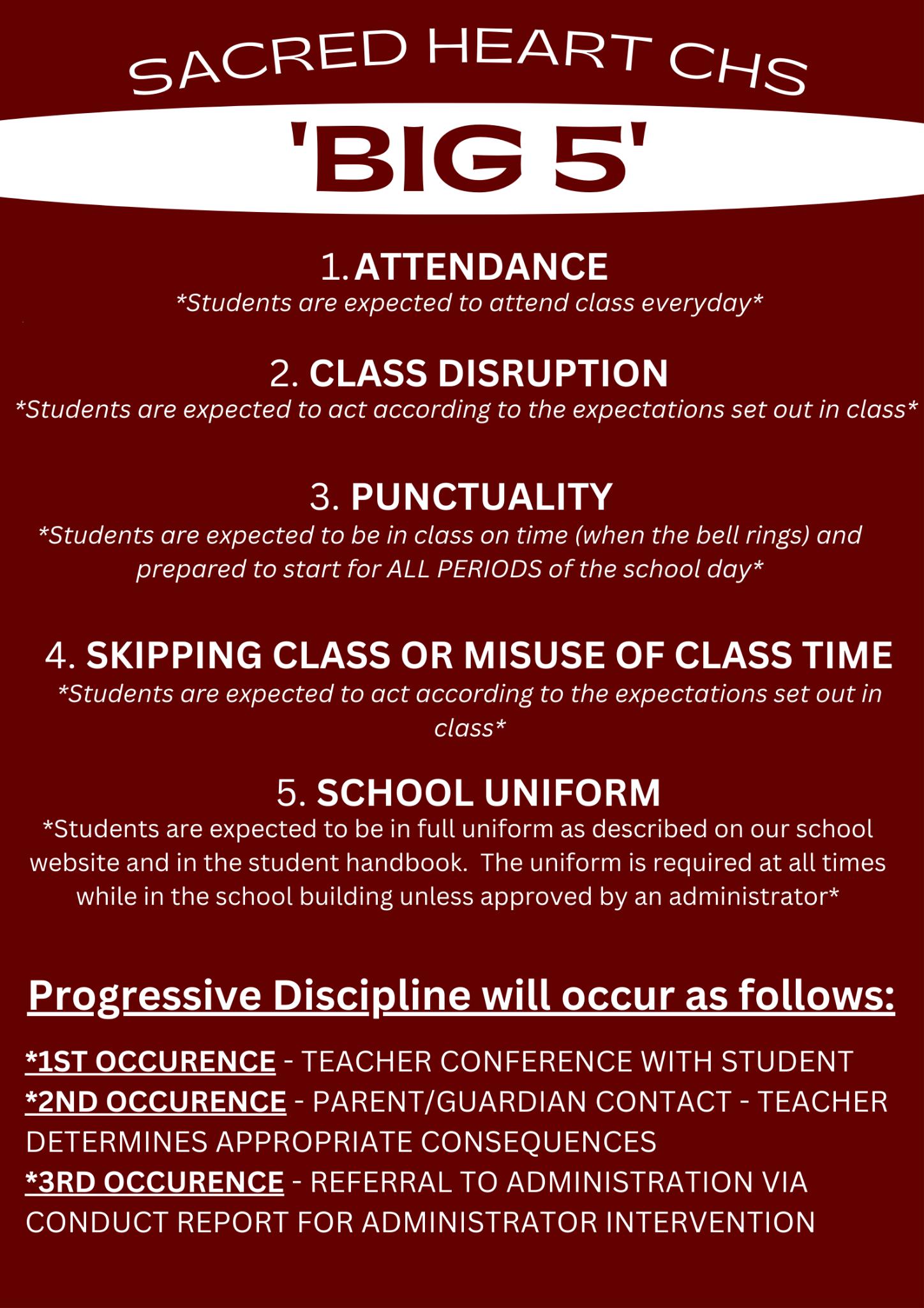 Students are expected to represent Sacred Heart CHS in a dignified and respectful manner, when they are involved in co-curricular activities at home and offsite