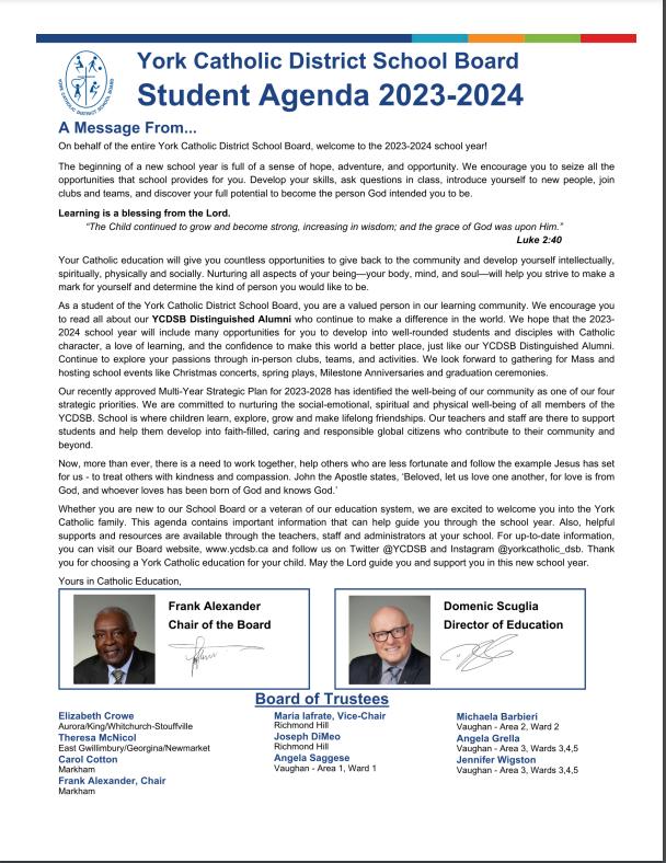 The school seeks to embrace the Ministry of Education’s recent document on Assessment and Evaluation entitled “Growing Success, 2010” The York Catholic District School Board has a companion document entitled “Guidelines and Procedures” that outlines the general framework for assessing student learning If parents have any questions about the nature and scope of their child’s work, they should consult with the classroom teacher first. If further clarification is required, then the parent should contact the child’s vice-principal.