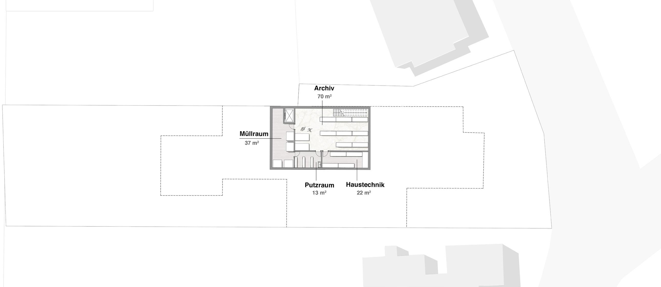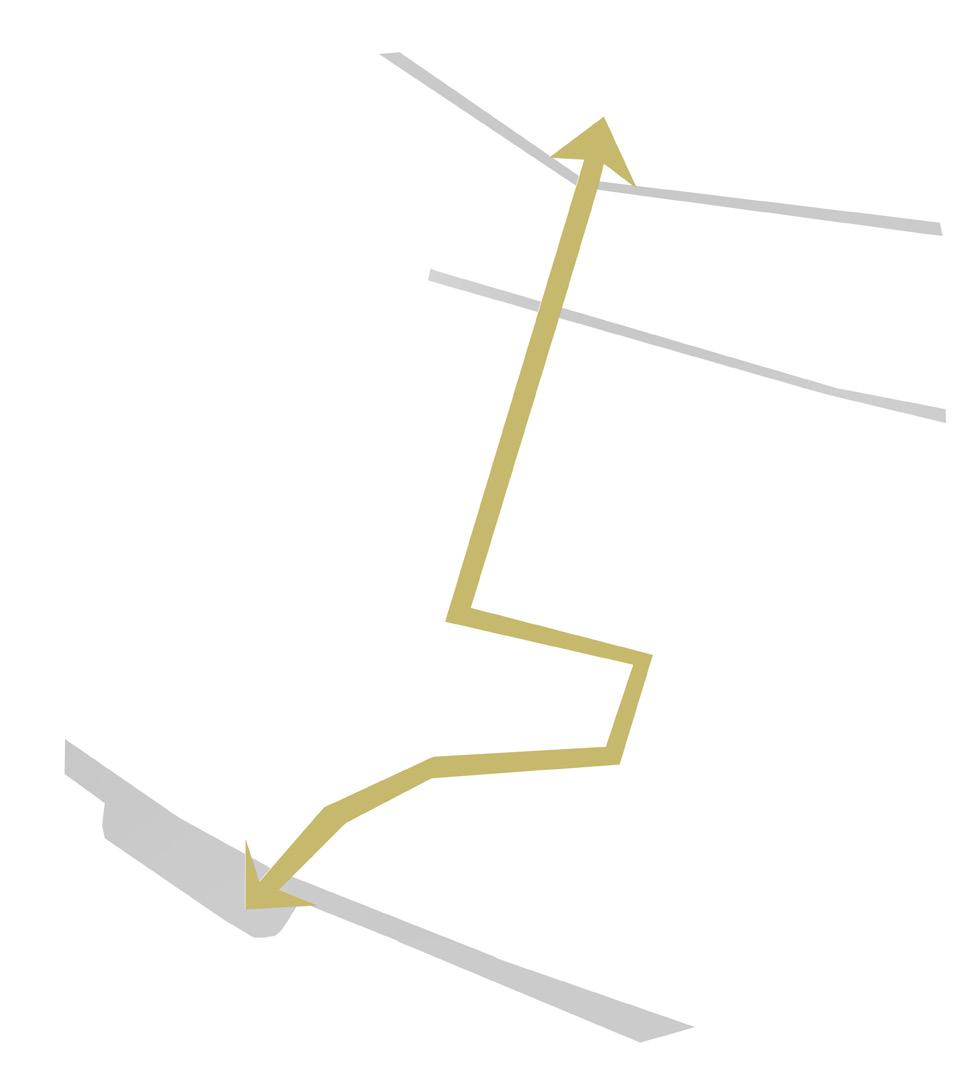 Wegführug im EG als Durchgang zwischen den Gebäudeteilen Wegführung durch das Gebäude als Loop auf 3 Ebenen