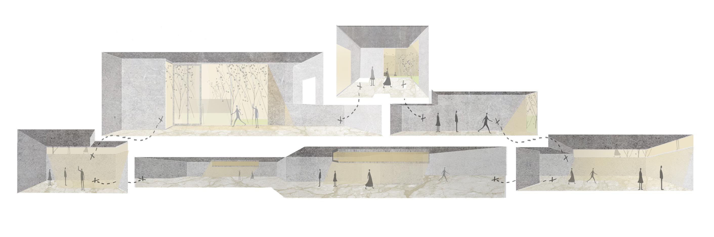 Abwechselnde Raumabfolge kleiner Raum - grosser Raum / hoher Raum - niedriger Raum / heller Raum - dunklerer Raum