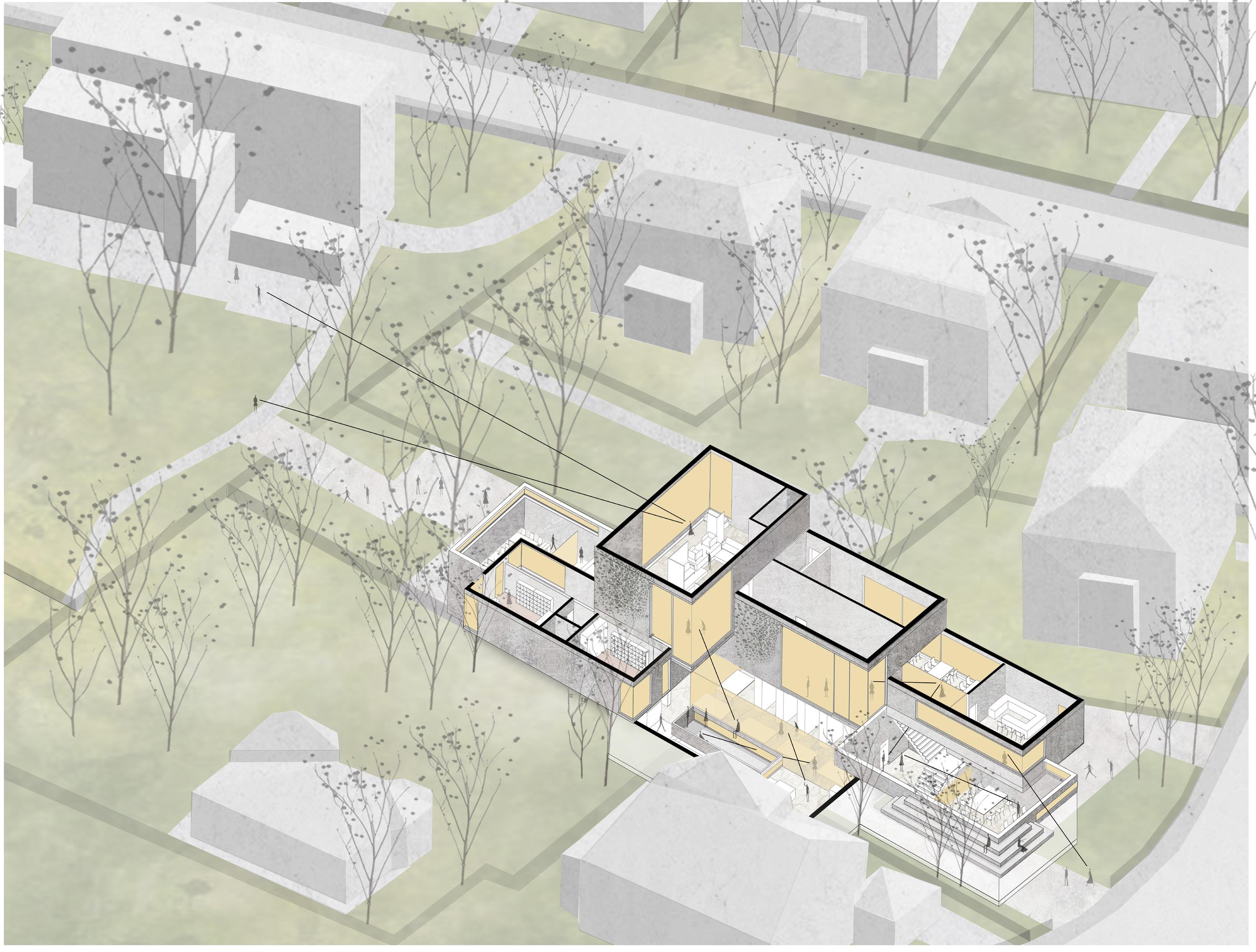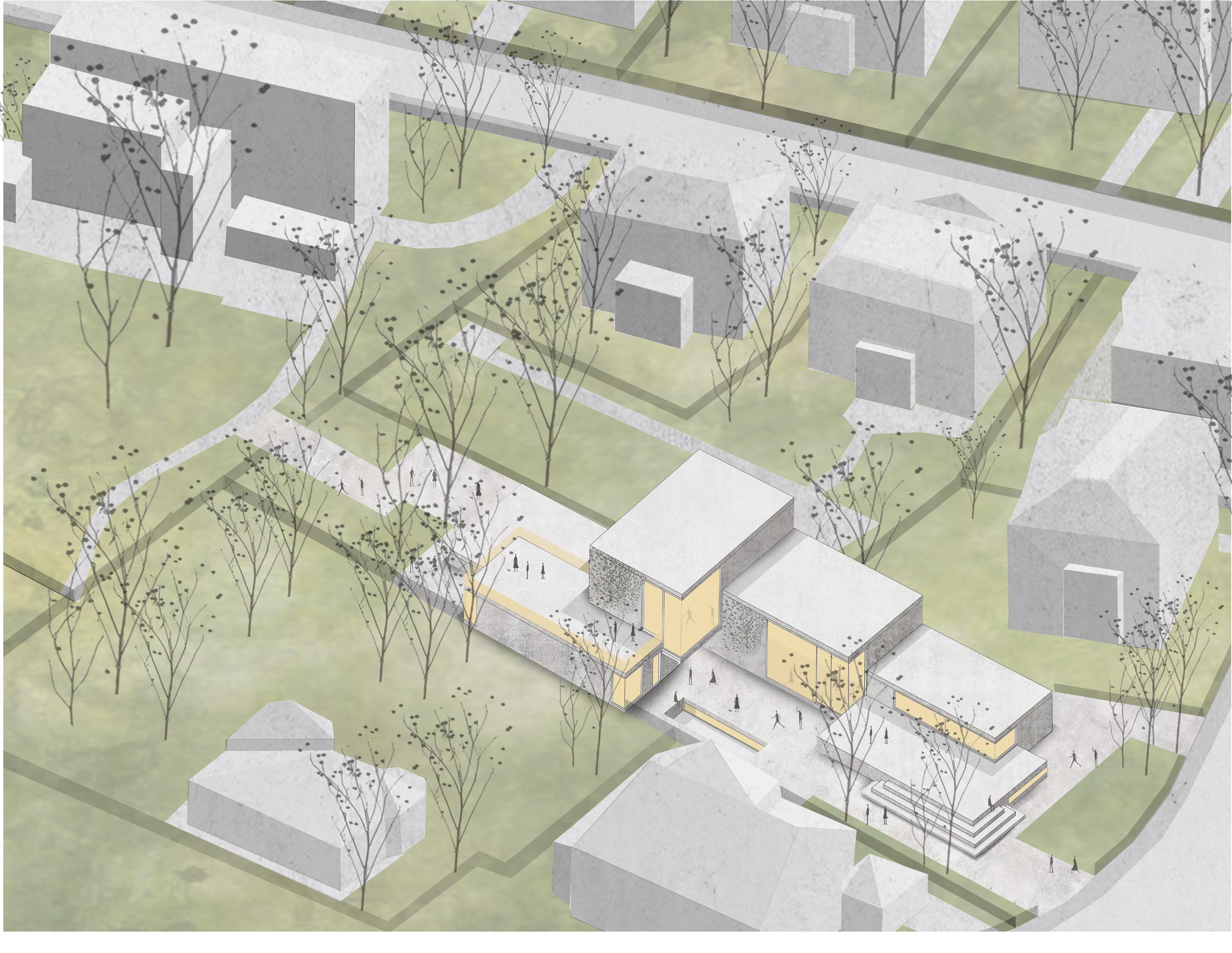Es entsteht nach zahlreichen Analysen der Umgebung, als Treffpunkt für Bildung, Entspannung und Unterhaltung. Es sind zusammenfliessende Räume für Einzelarbeit, Gruppenarbeit und Versammlungen. Oberlichter und Lichthöfe erzeugen optimale Belichtung in allen Bereichen. Das Gebäude ist ökologisch und enthält Trombewände mit Speichermasse. Sie nehmen tagsüber Wärme auf und strahlen sie Abends ab.