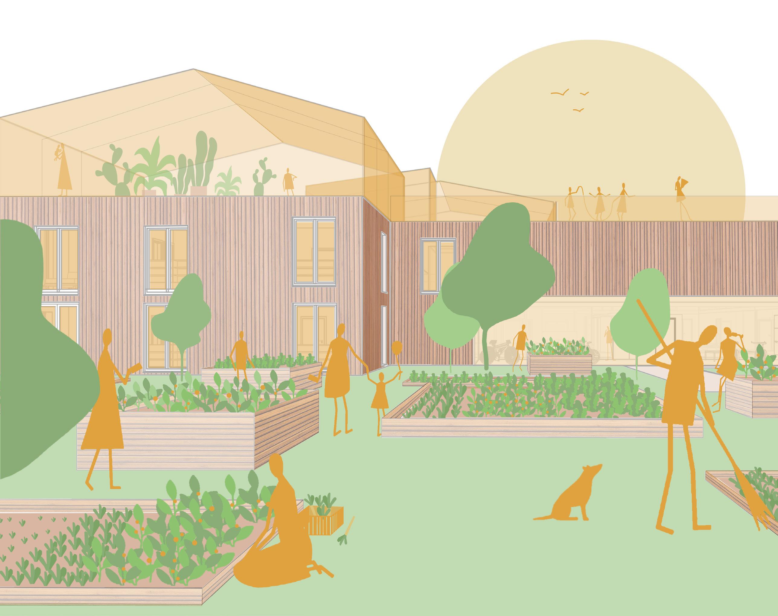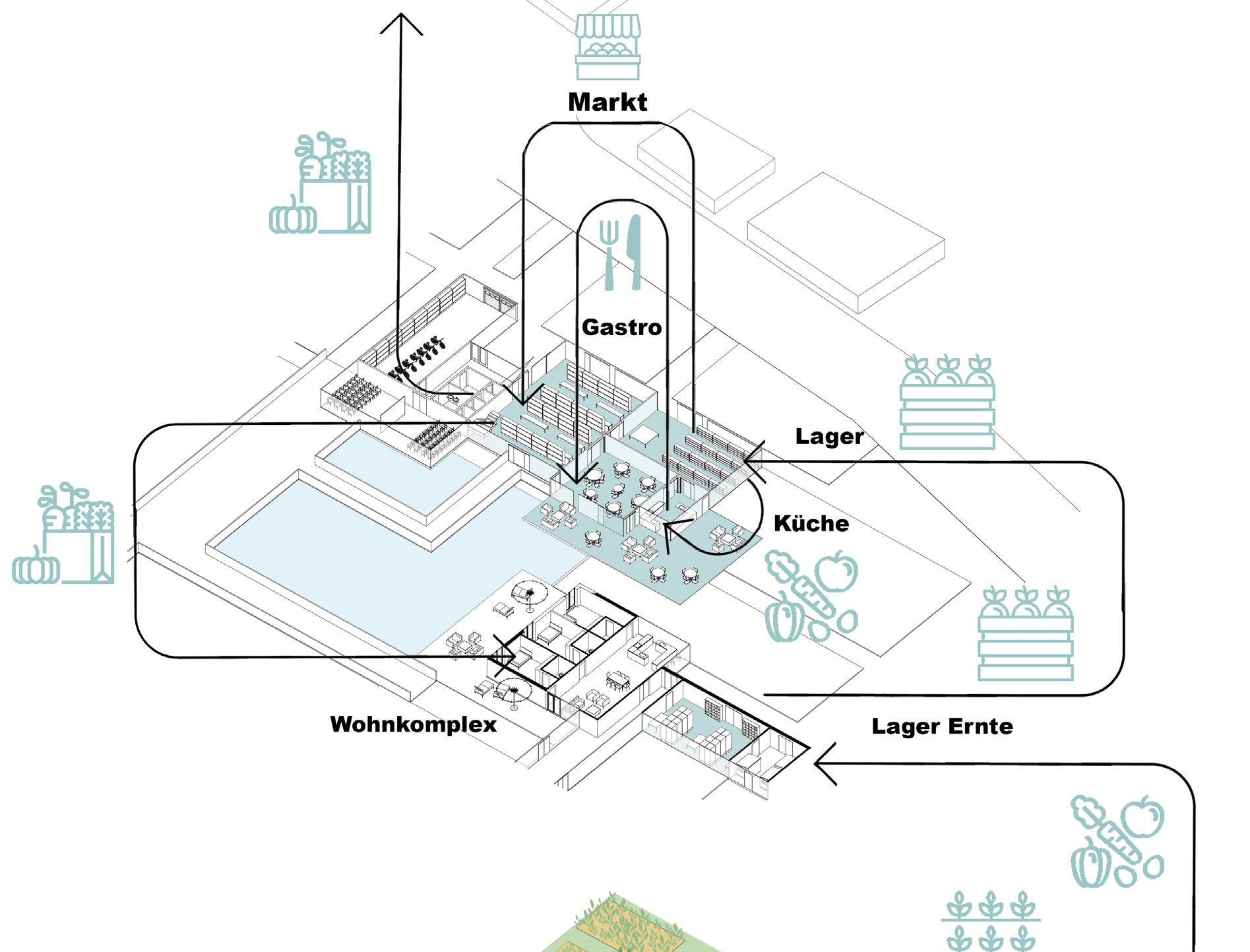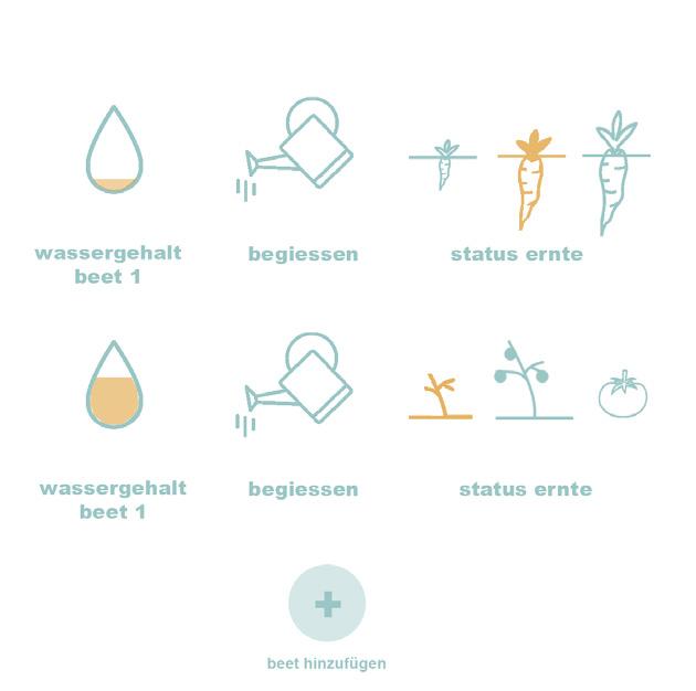 Da viele Personen gerne ihr Gemüse /ihre Pflanzen selber anpflanzen, aber keine Zeit um sich um ein riesiges Feld zu kümmern hätten, ergibt sich Möglichkeit unterschiedlich kleine Flächen für local-gardening anzumieten: 4 verschiedenen Grundflächen und Hochbeete oder Raum im Gewächshaus. Durch die Digitalisierung des local gardenings ist es den Bewohner möglich jeder Zeit den Zustand ihrer Bepflanzung aufzurufen.