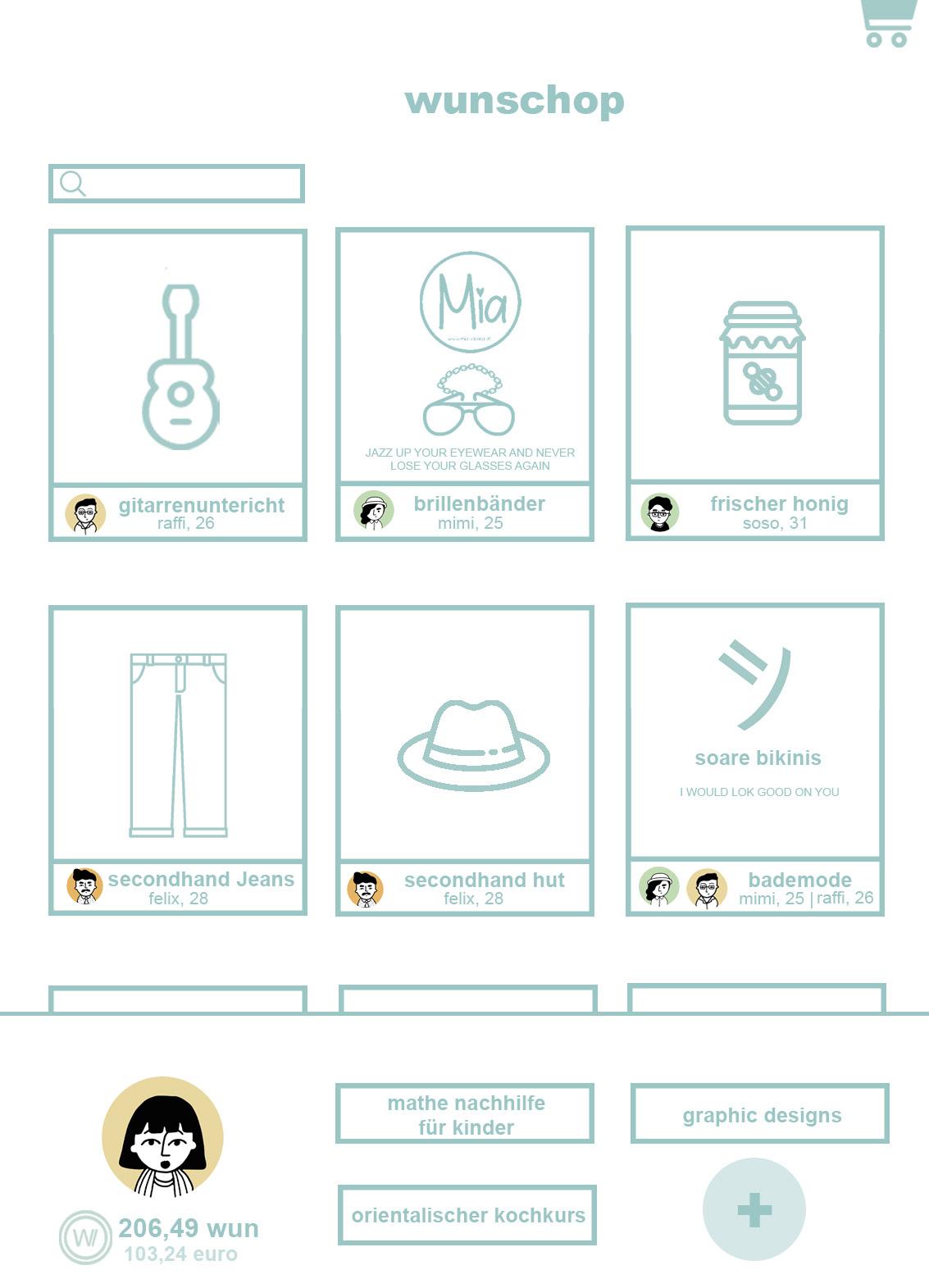 Durch die WunApp wird das verkaufen von selbst gepflanzenten Lebensmitteln und handgefertigten Objekten gefördert. Man kann die Sachen direkt über die App kaufen und mit der Währung WUN bezahlen.