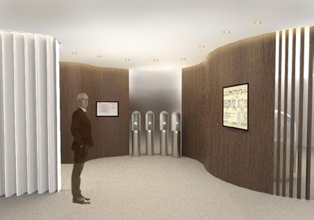 « Patrimoine en scène » plonge le visiteur dans un espace muséal qui emprunte les codes du théâtre, afin de marquer sa mémoire. Le visiteur devient un spectateur et la montre, l’actrice principale de cette narration. L’espace s’organise en actes et dépeint les multitudes facettes de son fondateur, sous le prime du passé, du présent et du futur.