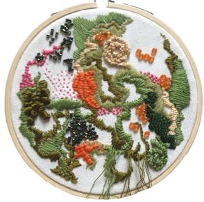Le jardin sans frontières, cet espace tissé par la poésie et l’imagination. La broderie permet l’expression plastique d’une odeur, d’une saveur... L’image se trouve êtrée le détail, le punctum de Roland Barthes.