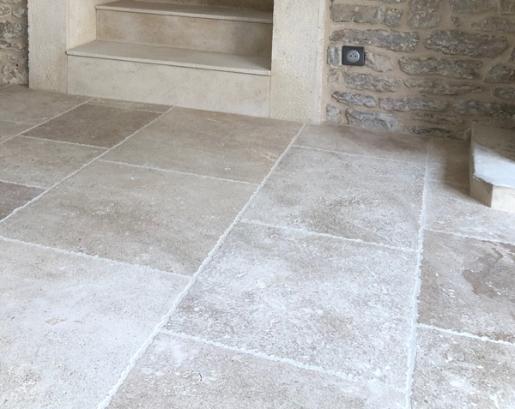 Type Semond Nuancé en 25x50 cm comme au sous-sol, ép. 1,5 cm https://www.lecomptoirdespierres.com/dallages/semond-nuance-pierre-de-bourgogne/