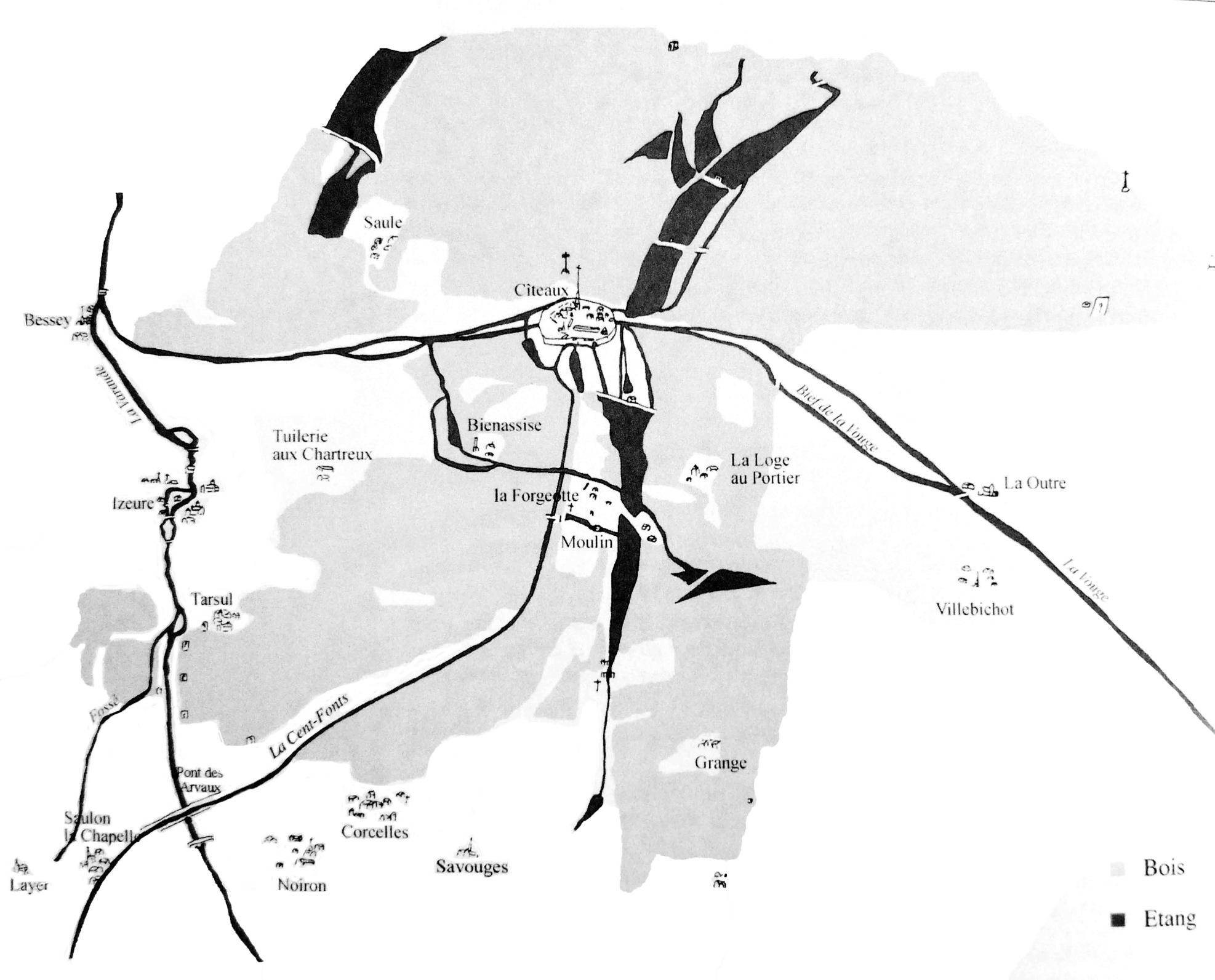 Figure 4: Perspective d'ensemble en 1718-1730 - Atlas de Cîteaux