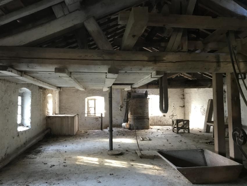 J’avais en premier lieu contacté les moines cisterciens au sujet du bâtiment du définitoire, en cours d’étude pour sa future restauration. J’avais en fait travaillé dessus sur le bon d’appel aux dons (pour le financement des travaux) lors de mon Service Civique à la Fondation du patrimoine de Bourgogne-Franche-Comté en 2016. C’est le frère Benoît qui m’a recommandé de voir le moulin car il est encore en bon état, bien que le mécanisme ne soit plus fonctionnel, mais aucun projet n’est prévu.