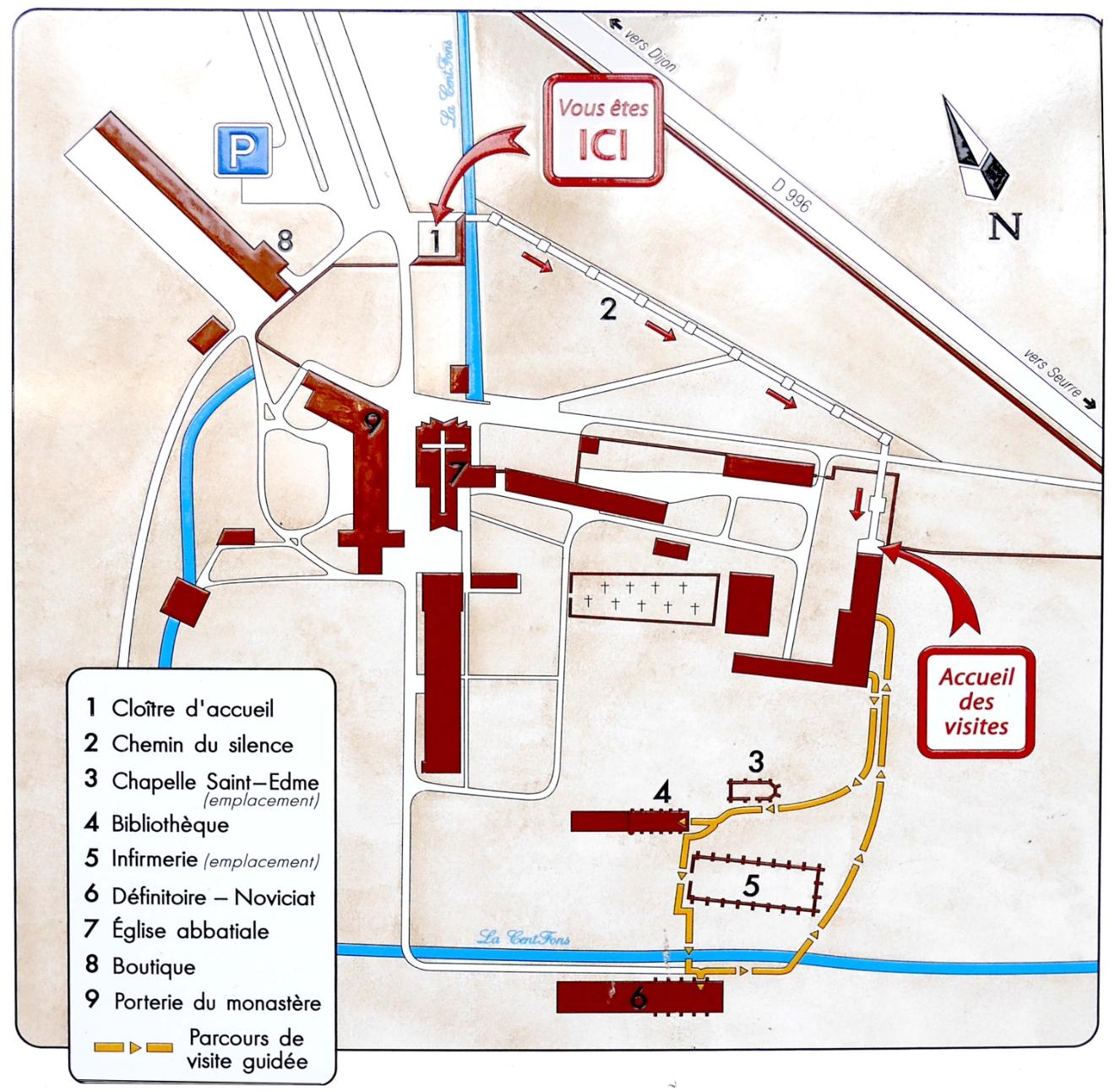 L’église est construite entre 1130 et 1150 dans le style cistercien, elle fut achevée en 1193. Ce lieu a abrité le Mausolée des ducs de Bourgogne. Le monastère, quant à lui, est édifié à la fin du XIIe siècle, composé de trois cloîtres5 comme l’illustre le dessin suivant.