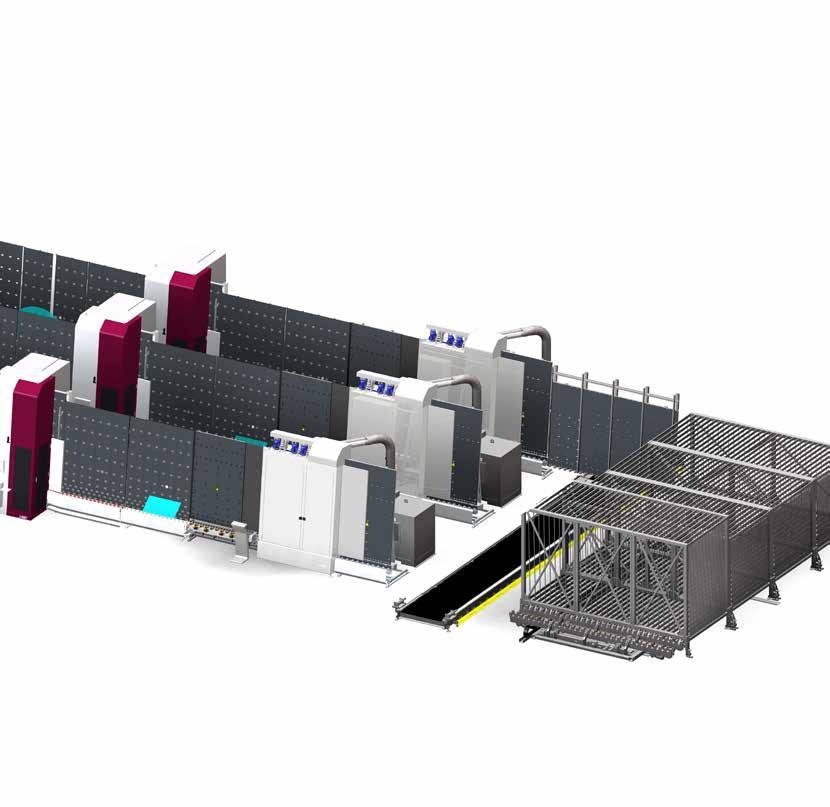 Ergänzt werden die Bearbeitungsgeräte von einer VHW Glaswaschmaschine. Auf Wunsch nachrüstbar mit einer Auswahl an vertikalen halb- oder vollautomatischen Shuttle- und Sortiersystemen.
