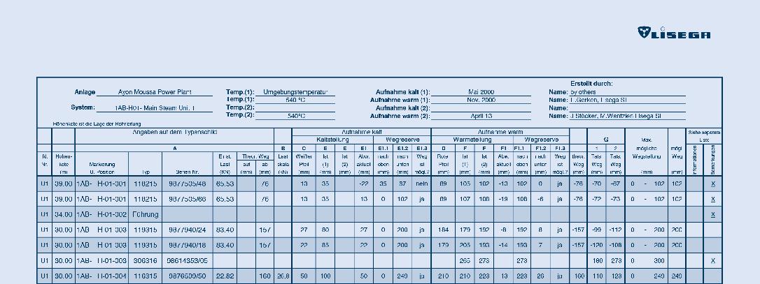 Zur Vermeidung kostspieliger Schäden und Betriebsausfälle ist eine regelmäßige Kontrolle der thermischen Rohrleitungsbewegungen und des Zustandes der Halterungen – insbesondere bei älteren Anlagen – dringend zu empfehlen.